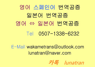 홈페이지; 카카오톡: lunatran E-Mail: lunatran@naver.com Tel: 0507-1338-6232 근무시간 외 연락은 받지 않는 점 양해 바랍니다. ---------------------------------------------------- 스페인어 번역(공증)/ 영어번역(공증)/일본어번역(공증)/ 일본어에서 영어번역(공증)/영어에서 일본어번역(공증)/ 스페인어에서 영어번역(공증)/영어에서 스페인어번역(공증) 독일어번역/이탈리아어 번역/포르투갈어번역/브라질어번역 *일산 소재*